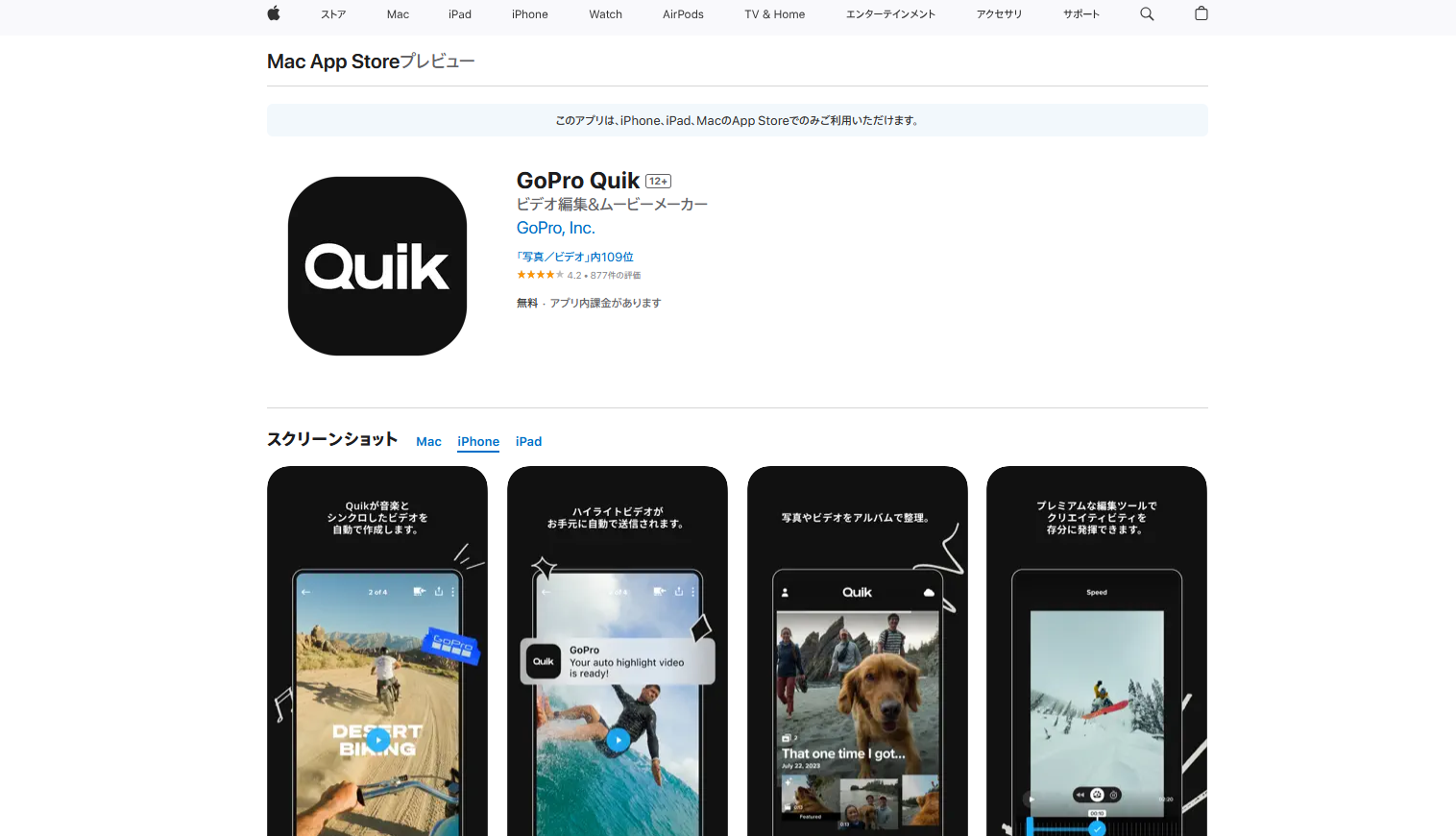 GoPro Quik:動画編集アプリは、自動編集機能を搭載している珍しいアプリです。素材のなかから最もよいショットを選び出し、最適な音楽を付けてビデオを制作してくれる機能が搭載されています。手動の編集も可能で、豊富なテーマやフィルターが用意されています。