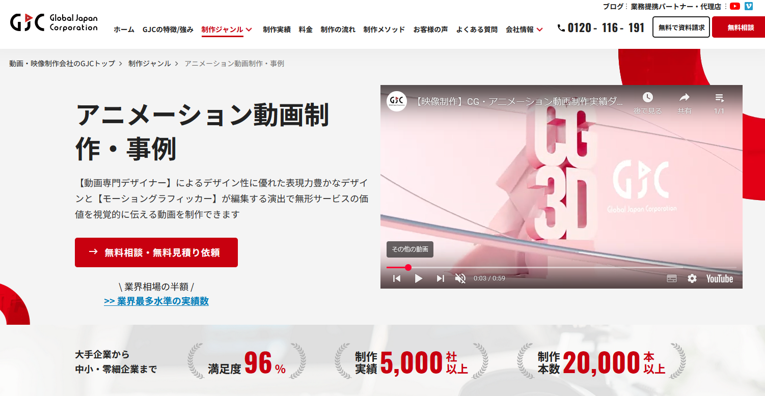 動画制作料金の目安が掲載されていて、メールで24時間問い合わせを受付していることも特徴です。CG動画制作を思い立ったときに、すぐに相談できる体制が整えられているのが魅力といえるでしょう。