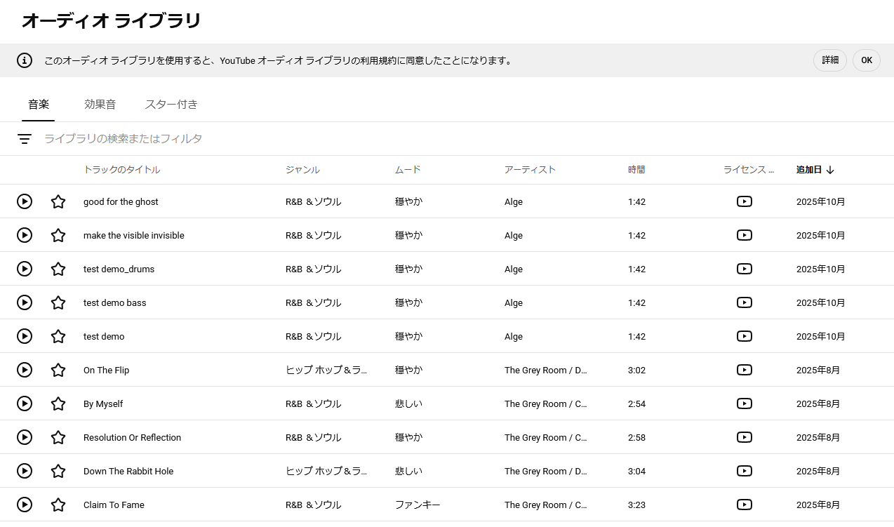 ジャンル(ポップ、ジャズなど)やムード(明るい、暗いなど)といった音源のテイストで検索することが可能なため、動画のイメージにあった音源を見つけやすい点も特徴の1つです。ダウンロード可能な曲数もかなり多く、さまざまなジャンルが用意されているため、YouTube動画のBGMに悩んだ際は、まずこのサイトを見てみることをおすすめします。