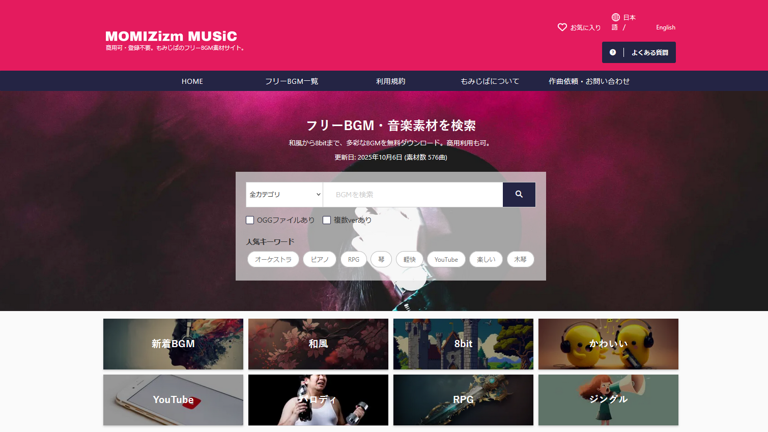 そのほかのフリー音源を配布しているサイトに比べると配布数自体は少ないものの、数少ない和風テイストに特化したサイトということもあり、多くのユーザーが愛用しているサイトの1つです。