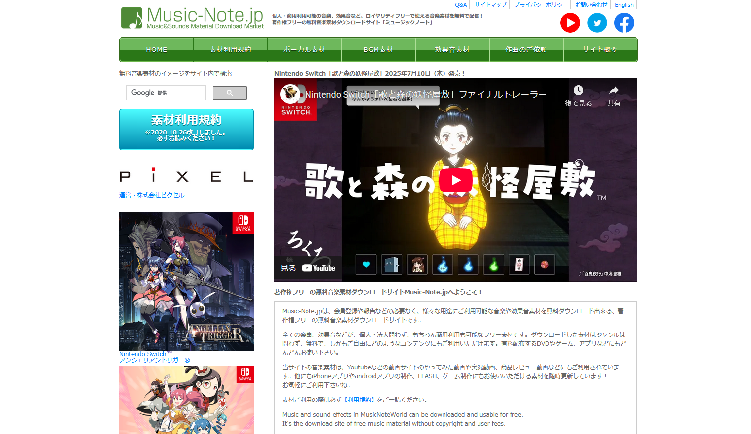 Music-Noteで配布されている楽曲は、ゲーム実況者やホラー系の動画投稿者などにたびたび利用されています。