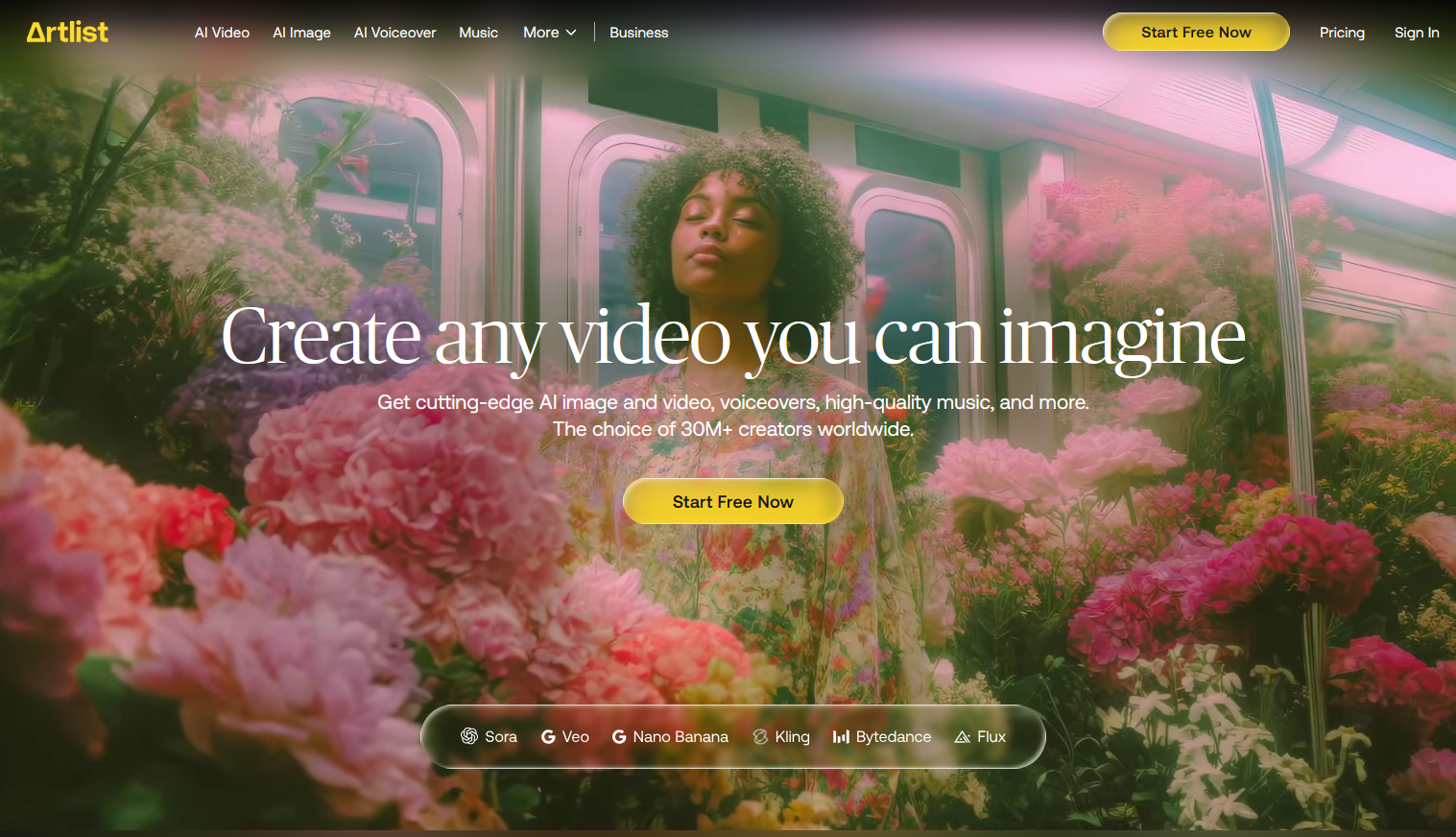 Artlistは、著作権フリーの音源を配布している海外のWebサイトです。利用には月額費用が必要で、楽曲が使用できる範囲によっていくつかの料金プランが設定されています。SNSや動画配信サービスに個人で投稿する場合は「Music & SFX」(月額1,590円)プラン 、クライアントワークへ利用する場合は「Artlist Max」プラン を利用する必要があります。