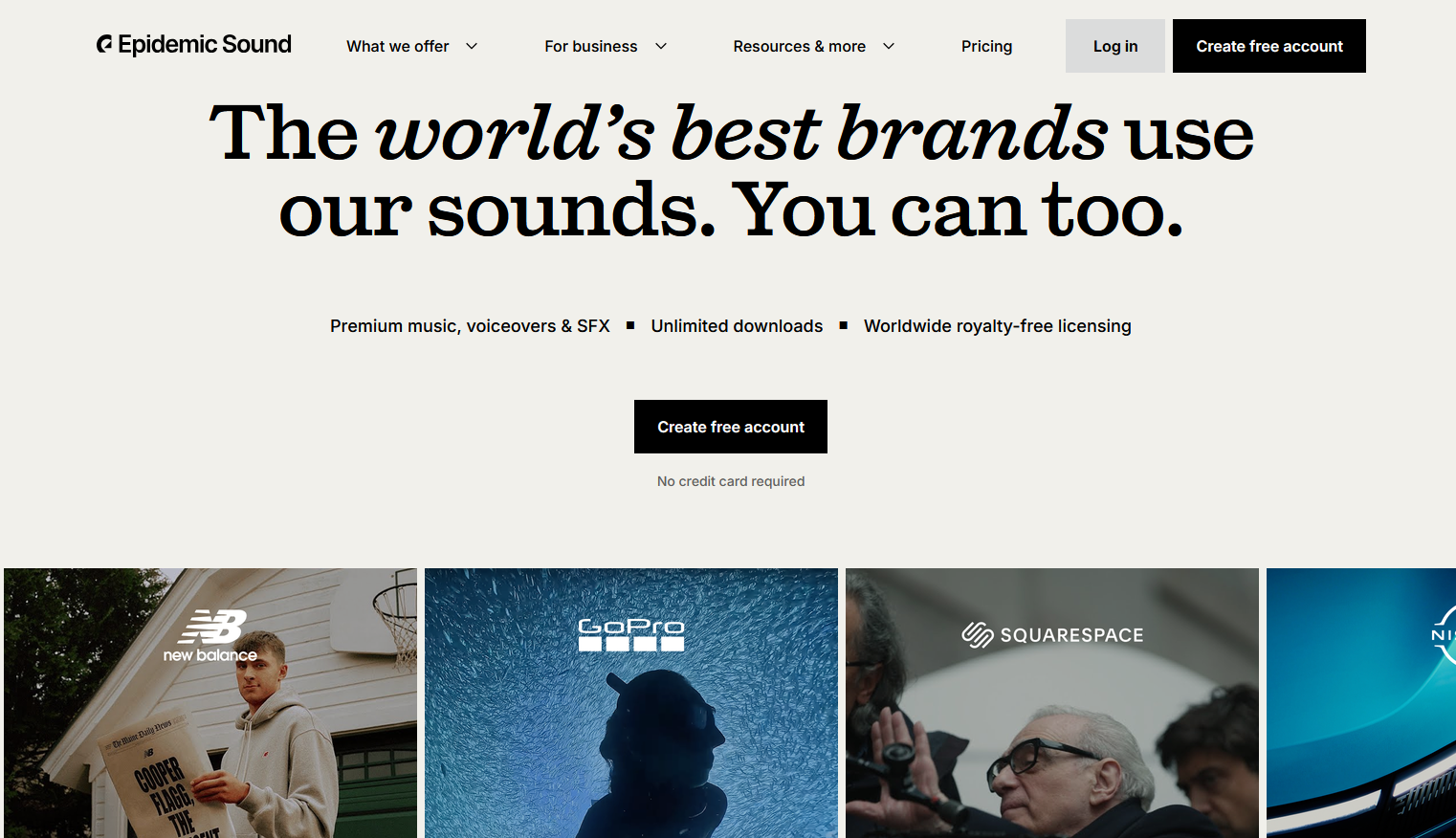 Epidemic Soundは、Artlist同様、サブスクリプションで楽曲がダウンロードできる海外のWebサイトです。さまざまなジャンルの楽曲が網羅されており、どの楽曲もハイクオリティで、YouTuberだけでなく、TV番組などでも頻繁に利用されています。