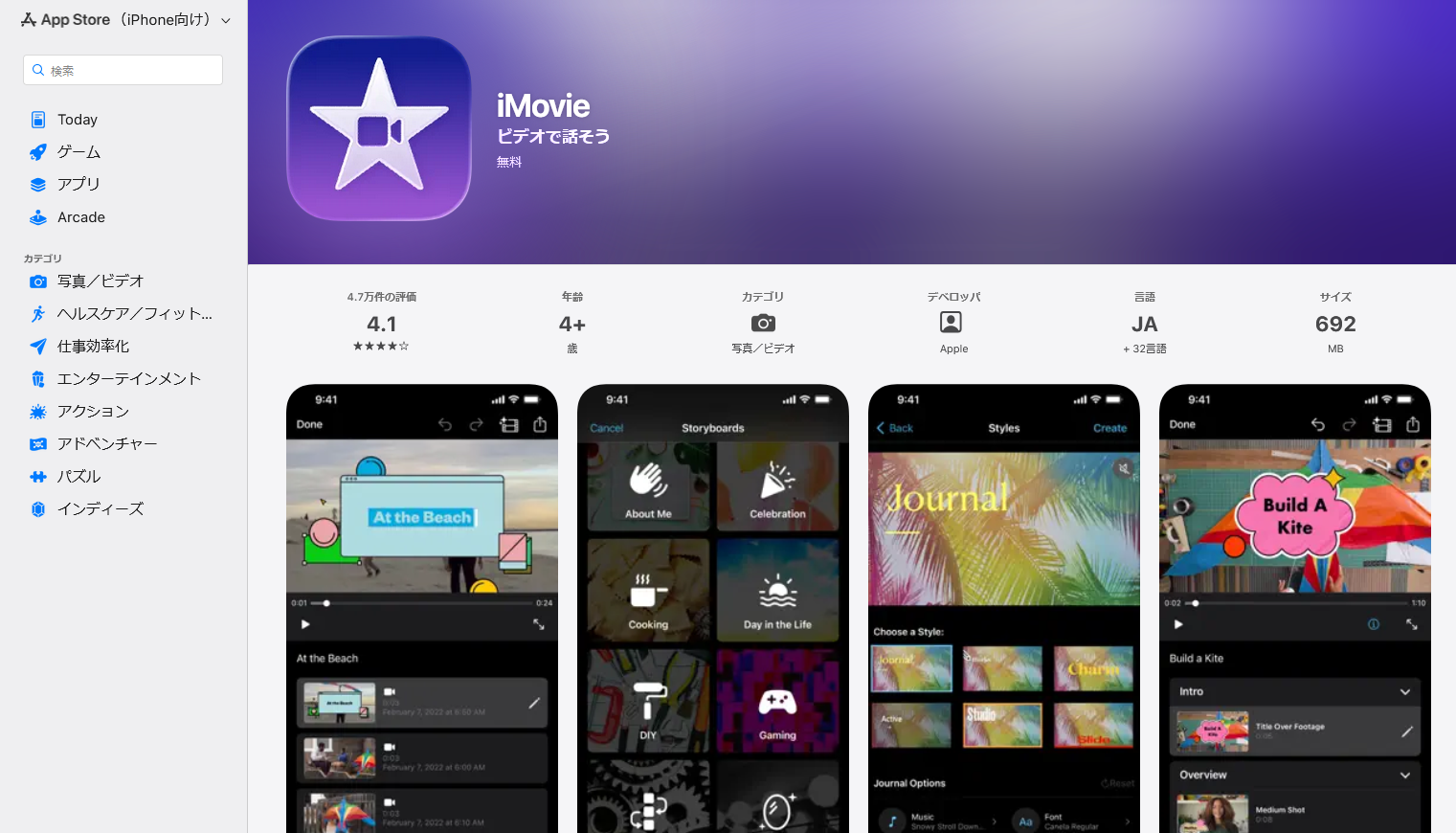 iMovieは、MacやiPhoneなどのApple製品で、無料で利用できる動画編集アプリです。大きな特徴としては、Apple製品同士で動画を共有できる点が挙げられます。編集途中でiPhoneからMacに移行して、続きの作業を行うことができます。iPhoneユーザーで、初めて動画編集をするという方におすすめです。