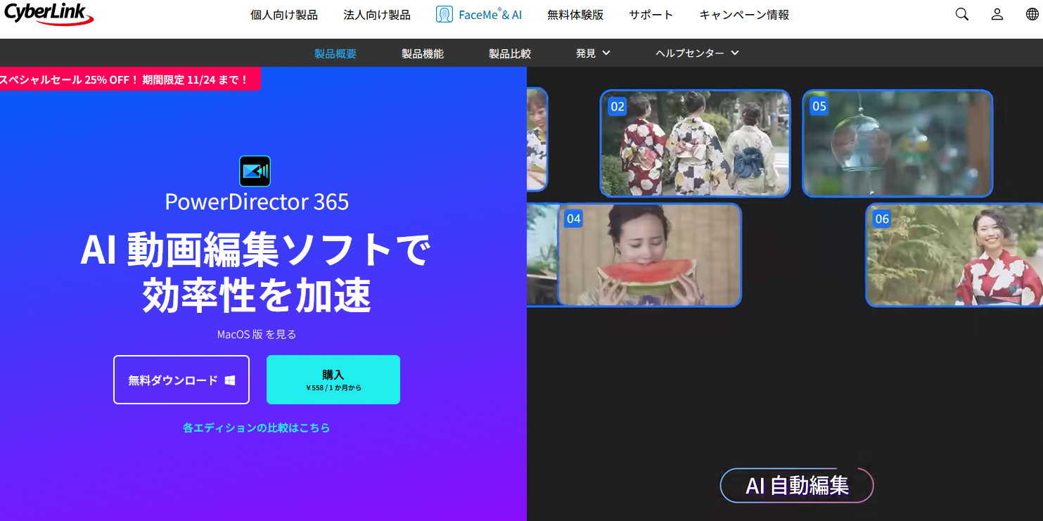 「なんだか物足りない」と感じたら、ほかのエディションに切り替えることも可能です。自分の技術、欲しい機能に応じてエディションを切り替えることで、快適に動画編集を進められます。