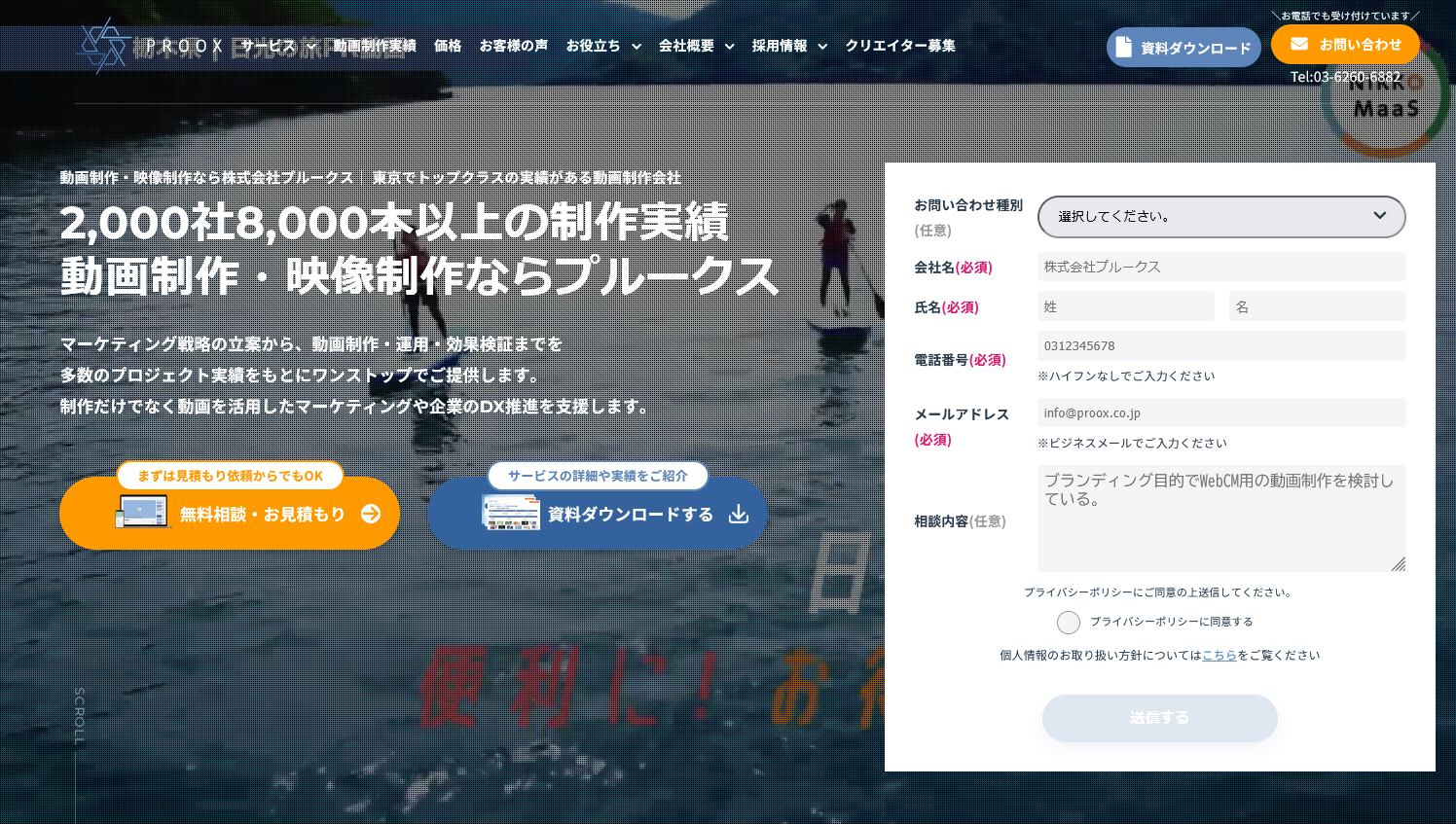 株式会社プルークスは、Yahoo! JAPANやRECRUITなどの大手企業との取引実績も豊富な動画制作会社です。動画制作に関する知見をもつ社内メンバーに加え、社外に1,000名を超えるクリエイターネットワークを有しているため、最適な予算・納期で高いクオリティの動画を提供できる点が強みです。