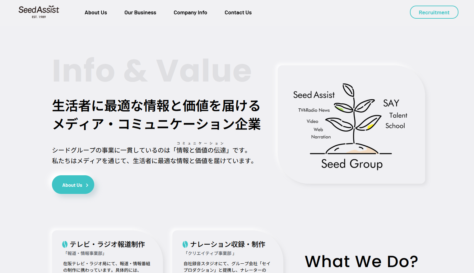 株式会社シードアシストは、ラジオや報道などの分野に深く携わってきた知見を活かして動画制作を行っている少し変わった経歴の会社です。動画制作から放送枠の確保まで、ワンストップでテレビCMに関する業務を依頼できる点も同社の特徴的なサービスの一つです。