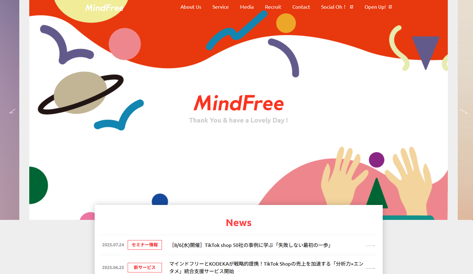 マインドフリー株式会社は、Facebook・Twitter・Instagram・LINE・TikTokなど幅広いSNSの動画広告制作・運用に対応しており、国内外1,000社以上の取引実績がある動画制作会社です。動画広告運用の課題定義や戦略設計、運用、検証までワンストップで対応してくれる点が魅力といえるでしょう。