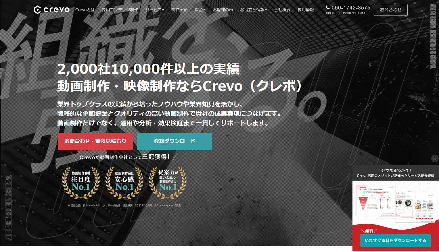 Crevoは「どこよりも戦略的で、どこよりもリーズナブルで、どこよりも効率的な動画制作を叶える」と掲げており、お客様の目的に応じた戦略を練って動画を制作してくれるでしょう。