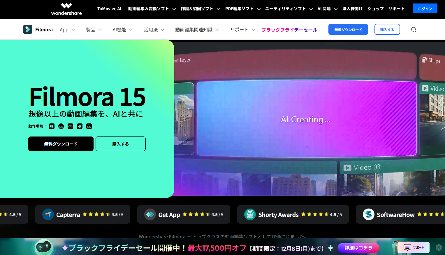 Filmoraは「ビギナーも、上級者も、オールインワン動画編集ソフト」と謳っているように、わかりやすい操作画面から多くの人に愛用されている動画編集ソフトです。難しい操作がなく、直感的に動画編集ができます。